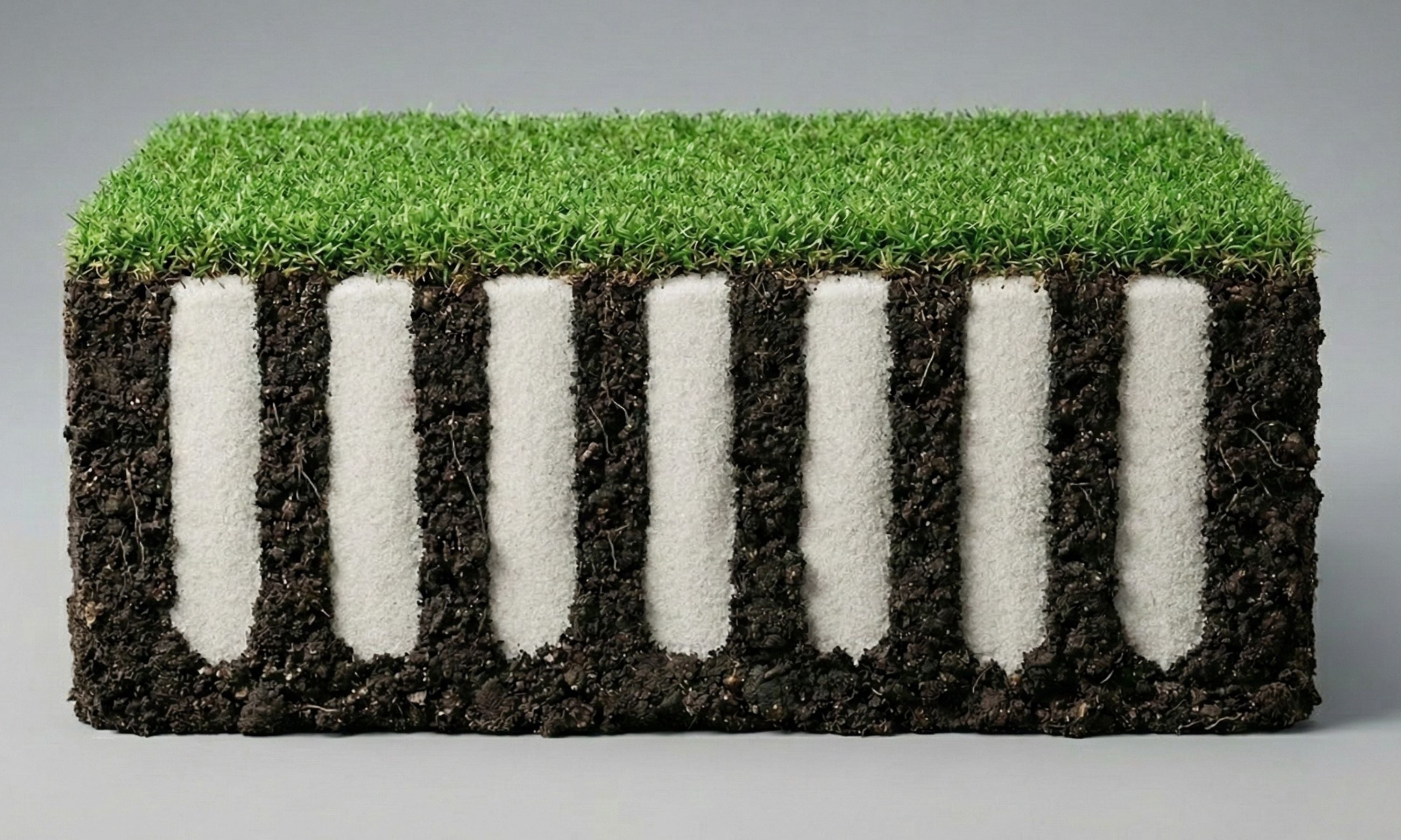 Tecnología XP Dual Jet. Inyectamos arena (húmeda o seca) a alta presión para renovar la estructura del suelo desde dentro. El complemento perfecto para reducir la materia orgánica (thatch) sin el estrés superficial de la tracción mecánica.